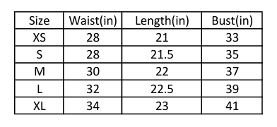 XS, S, M, L, XL, XXL